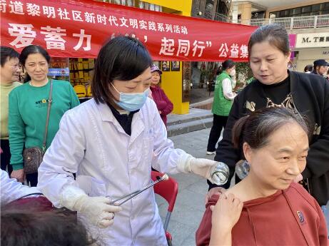 海安市海安街道新時代文明實踐所聯合黎明社區新時代文明實踐站在恒天新世界廣場舉辦“為愛蓄力 ‘益’起同行”文明集市活動。