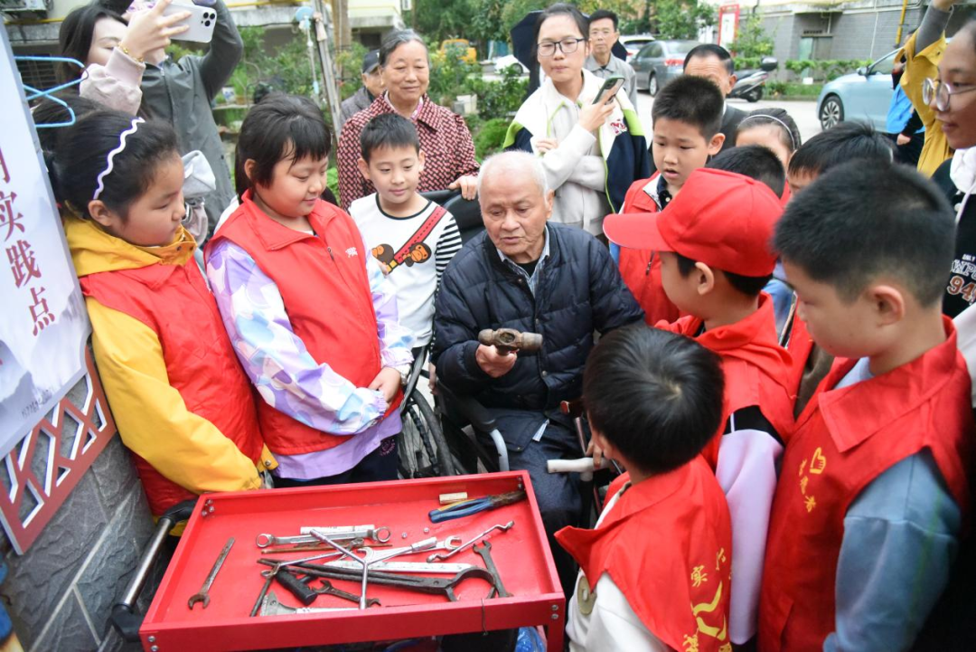 活動結束后,學生代表在劉宏燕的帶領下共同看望、慰問了“江蘇好人”趙興實。趙興實與小朋友們分享了自己堅持二十年修車費用不變的心路歷程,深深觸動了小朋友們的心靈,讓他們對誠實守信這一美德有了更為直觀和深刻的體會。活動現場,小朋友們還興高采烈地向趙老請教了各種修車工具的用途及使用方法。趙老耐心細致的講解,不僅讓孩子們進一步認識工具、學會使用工具,更讓他們深深體會到勞動創造美好生活和勞動者的光榮。