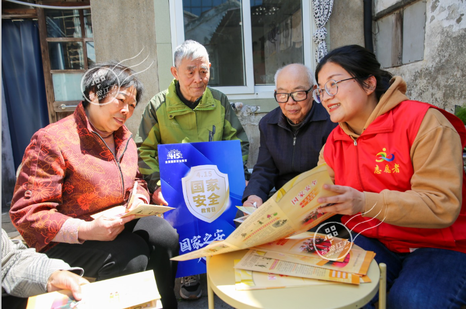 4月14日,白蒲鎮(zhèn)勇敢社區(qū)文明實踐宣講員走進古街,向轄區(qū)居民宣傳國家安全知識,增強國家安全意識。(徐慧 攝 視覺江蘇網(wǎng))