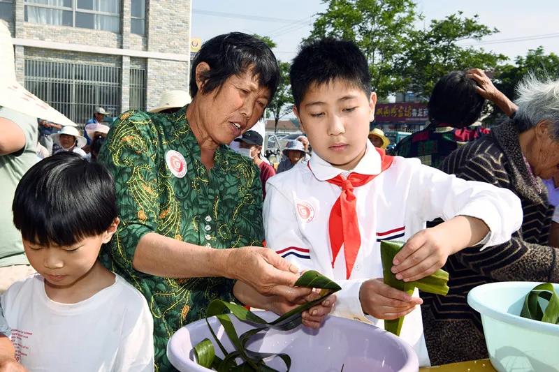 隨后,廣大村民、志愿者及參賽選手來到包粽子比賽現場。“預備,開始!”隨著吹哨聲想起,各組參賽選手盡顯神通,盡顯風采。有的負責箬葉的拼接和圍攏,有的負責剪短麻繩,還有的負責包裹和打結……粽葉飄香,傳遞溫暖。參賽選手們用碧綠的粽葉緊緊裹住米粒,三角粽、牛角粽、四角粽在手中生花。大家有條不紊,年長的、年輕的,你爭我趕,比賽現場氣氛熱烈,高潮迭起,村民們在一旁拍手、點贊,樂在其中。