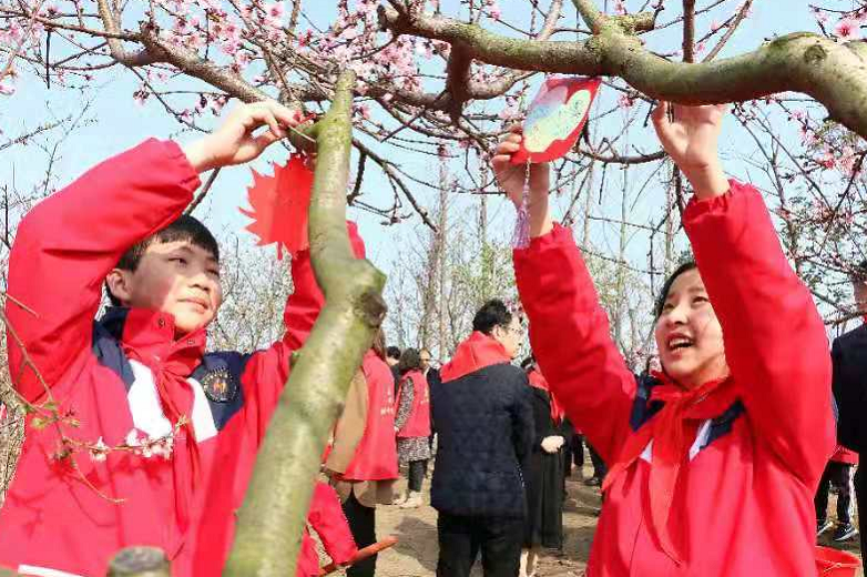 “今日種下一棵樹,來年收獲一片綠。”“愛樹、植樹、護(hù)樹,你是我的‘金子樹’。”“你獻(xiàn)一點(diǎn)綠,我獻(xiàn)一點(diǎn)綠,讓綠成為‘生命主旋律’!”……植樹后,少先隊(duì)員們把親手制作的、署了自己名字的護(hù)樹卡掛在樹上,舉手比耶,與小樹苗合影留念。“這次活動讓我們有了植綠、愛綠、護(hù)綠的意識,今天種下的樹一定會茁壯成長,也希望自己和身邊的家人朋友能夠健康、堅(jiān)強(qiáng),最后長成參天大樹。”崔霖鈺小朋友眨巴著大眼睛,告訴記者。