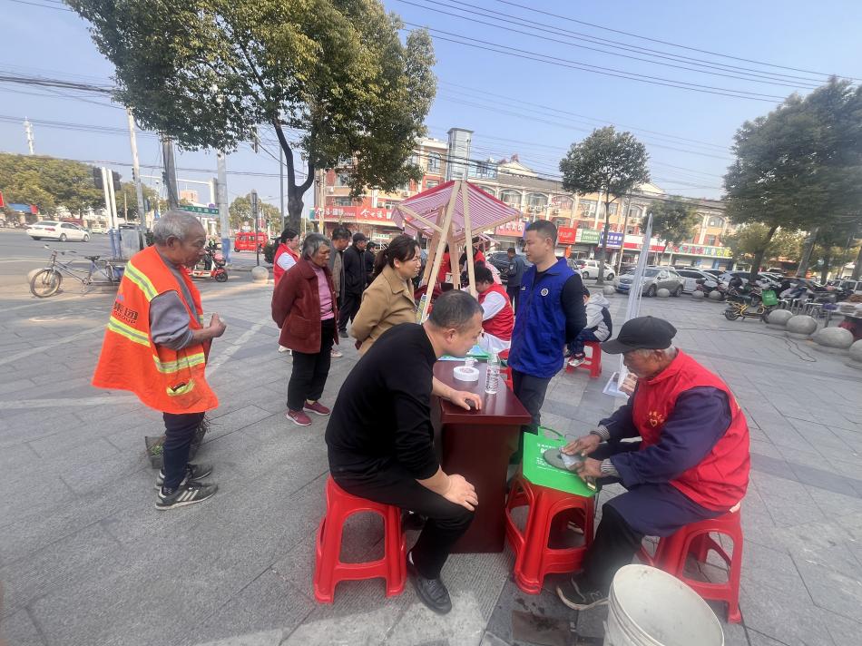 鎮(zhèn)中社區(qū)舉辦的“學(xué)雷鋒市集”成為最熱鬧的暖心陣地,衛(wèi)生院、眼科醫(yī)院的醫(yī)護(hù)人員們?yōu)榫用裉峁┭獕簻y(cè)量、視力檢測(cè)、聽(tīng)力篩查等服務(wù),并針對(duì)老年人常見(jiàn)病進(jìn)行健康指導(dǎo),發(fā)放健康手冊(cè)200余份。在政策宣傳攤位,志愿者們通過(guò)展板講解、互動(dòng)問(wèn)答等方式,耐心地向群眾普及醫(yī)保政策、反詐知識(shí)、惠民補(bǔ)貼等政策,解答群眾疑問(wèn)50余人次。便民服務(wù)攤位也是人氣滿(mǎn)滿(mǎn),修電器的師傅們專(zhuān)注地修理著村民送來(lái)的電器,磨菜刀的攤位前則排起了小長(zhǎng)隊(duì)。一位正在等待磨菜刀的大哥高興地說(shuō):“這些服務(wù)太實(shí)用了,解決了我們生活中的大問(wèn)題。”