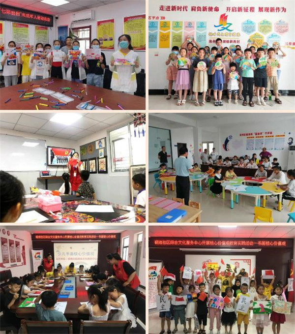 暑假期間,海州區(qū)開(kāi)展“文明·傳承·未來(lái)”七彩夏日未成年人暑期活動(dòng),讓孩子們傳承文明、共創(chuàng)未來(lái)。硯池社區(qū)墨香志愿者們指導(dǎo)小朋友們用手中的畫筆,書畫出自己眼中的價(jià)值觀,在潛移默化中培育和踐行社會(huì)主義核心價(jià)值觀;古樓社區(qū)志愿者指導(dǎo)孩子們用手中的畫筆描繪自己心目中的文明畫卷,既培養(yǎng)了孩子們的想象力,又提升了他們對(duì)文明禮儀的理解;寧海街道太平村特邀書法老師開(kāi)辦書法公益培訓(xùn)班,讓孩子們接受傳統(tǒng)文化教育;市民社區(qū)志愿者為孩子們講解中國(guó)共產(chǎn)黨發(fā)展歷史,播放宇航員飛天紀(jì)錄片,孩子們用自己的畫筆描繪祖國(guó)的藍(lán)天和航天航空的雄偉藍(lán)圖。