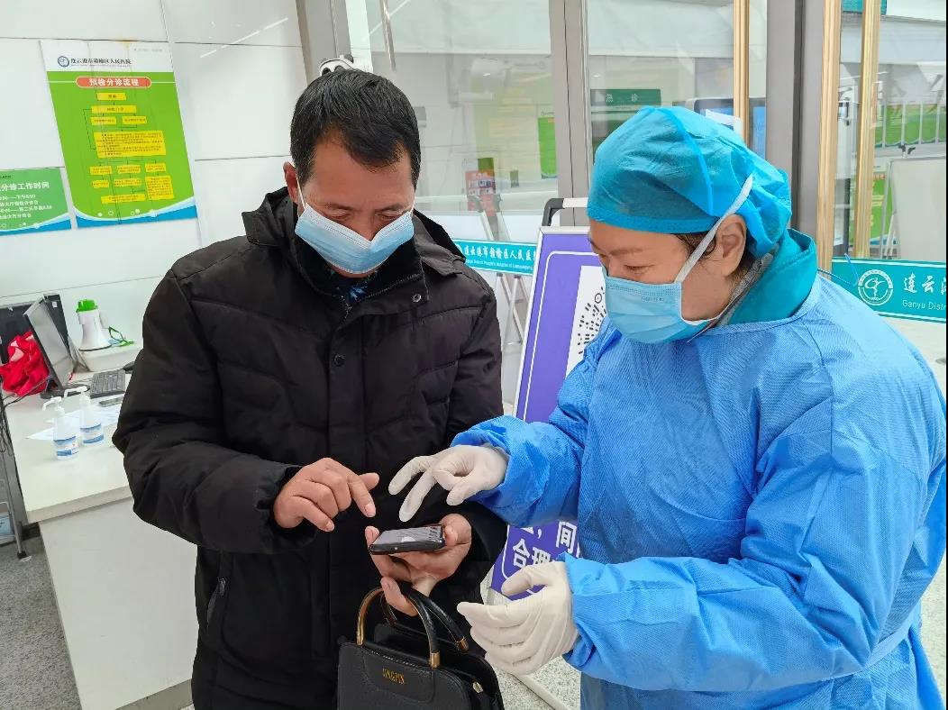 贛榆區人民醫院人流量較大,做核酸檢測的人員較多,為了緩解預檢分診處和核酸檢測處工作壓力,醫護人員組成了志愿者服務隊,在導診咨詢臺、檢測區為患者提供服務。“候診排隊期間,我們也會提示患者戴好口罩、保持間距、宣傳防疫知識,提升群眾的防控意識。同時引導群眾線上繳費,盡最大的努力幫助每一位需要幫助的檢測群眾快速完成核酸采集。”醫護志愿者說。