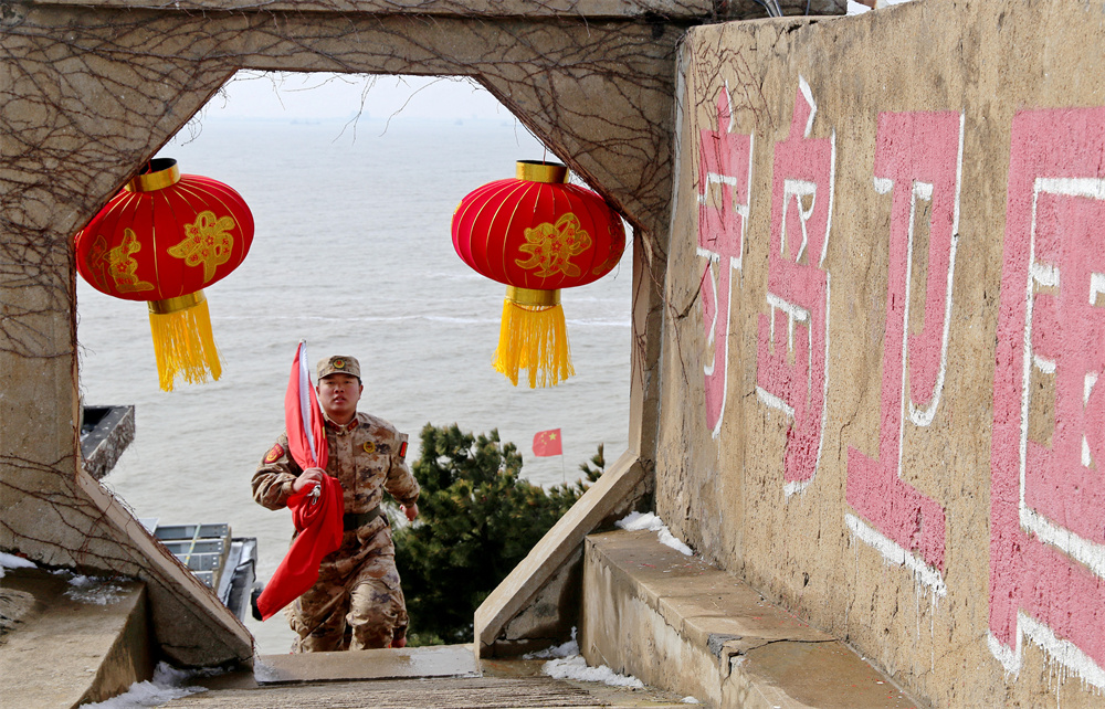 新江蘇·中國江蘇網2月7日連云港訊(新華報業·新江蘇記者 童金德 通訊員 夏興儉 夏瑞宇)“春帶潮聲,一宵盡染開山碧;旗輝霞彩,寸土長飄中國紅。”2月6日上午,雪后陽光灑向“人民楷模”王繼才生前駐守的黃海前哨——開山島,小島顯得清凈安寧,一場新春揭聯儀式又把小島哨所映襯得格外喜慶。