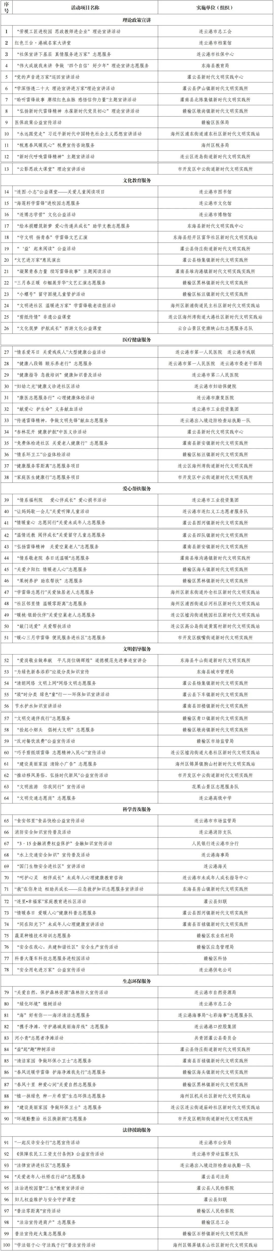 全市學雷鋒志愿服務月100項重點志愿服務項目
