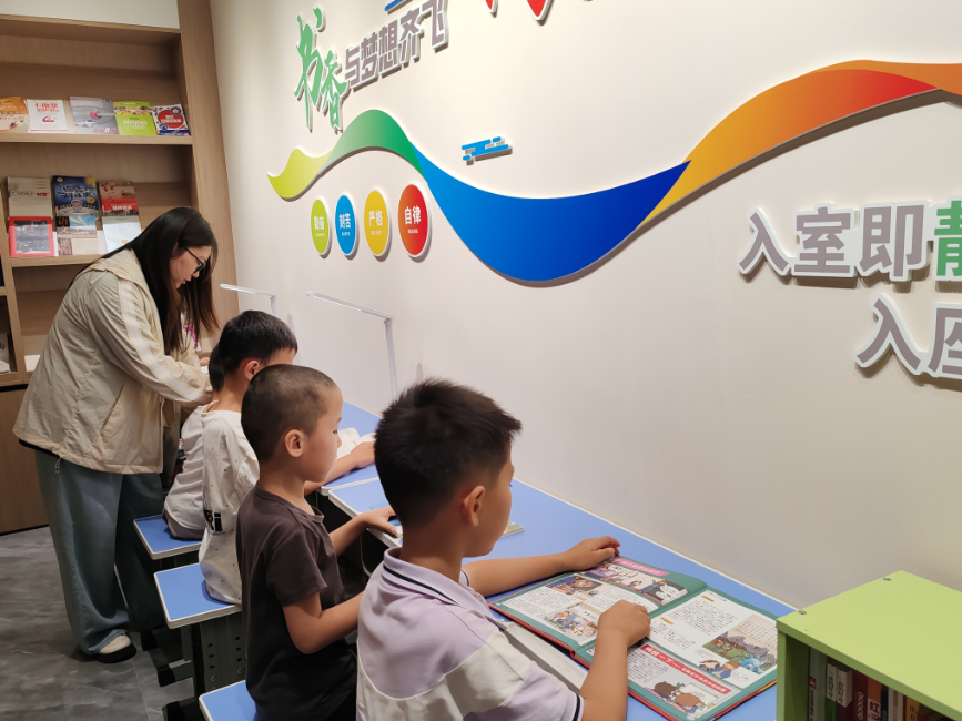 而對于暑期中的孩子們來說,前集村的暑期夜間托管班成為他們的快樂港灣。為破解暑期“看護難”的問題,村里召集了返鄉(xiāng)大學(xué)生和青年志愿者,為孩子們精心打造了豐富多彩的假期活動。夜間課程設(shè)置多樣化,安全自護課讓孩子們增強自我保護意識;練字課培養(yǎng)孩子們的專注力和耐心;課業(yè)輔導(dǎo)幫助他們鞏固知識;趣味英語和繪本課則激發(fā)了孩子們的學(xué)習(xí)興趣。此外,農(nóng)家書屋里琳瑯滿目的課外書籍,也為孩子們打開了新知識的大門,讓他們在閱讀中暢游,開拓視野。