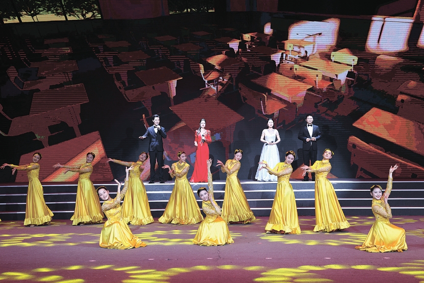 本次活動(dòng)分為四個(gè)篇章,以理想、情操、學(xué)識(shí)與仁愛為主題,通過精彩的歌舞演出,生動(dòng)的現(xiàn)場(chǎng)訪談等形式,歌頌教師“擇一業(yè)、終一生”的奉獻(xiàn)精神。“歲月催人老,老師不會(huì)老,今生能做你的學(xué)生真好……”節(jié)目《老師不老》感人至深,道出了老一輩教師扎根鄉(xiāng)村,為偏遠(yuǎn)地區(qū)學(xué)生點(diǎn)亮希望之光的奉獻(xiàn)精神;“她是光、她是聲音、她是母親,她是祖國(guó)!”連云港市特教中心聾盲生通過節(jié)目《追隨祖國(guó)》,表達(dá)了大家發(fā)自內(nèi)心的,對(duì)祖國(guó)與老師深沉的愛……