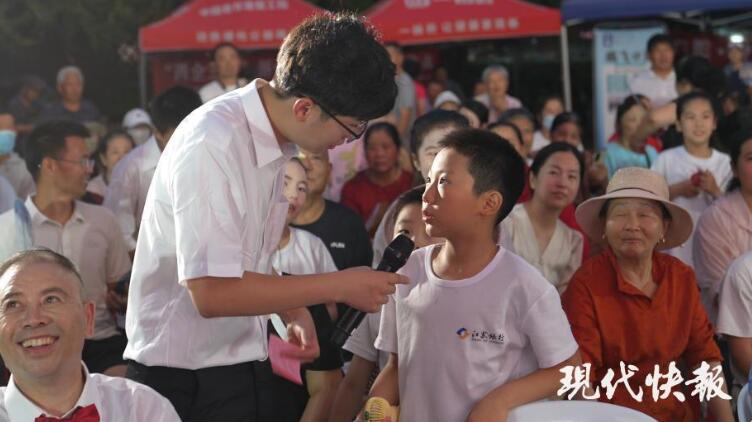 科普互動(dòng)環(huán)節(jié)像藏在夜色里的驚喜。“今年是抗戰(zhàn)勝利多少周年?”“廢舊電池屬于哪類垃圾?”……問題剛出,臺(tái)下的小手、大手便爭(zhēng)相舉起,青年人才和家屬也加入搶答,答對(duì)者攥著小禮品的雀躍,比燈光還要亮上幾分。