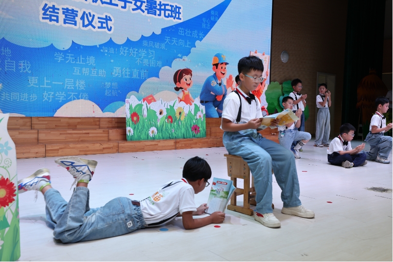 閉營儀式的匯報演出,成為孩子們展示暑托學習成果的重要平臺。15 個節目涵蓋舞蹈、合唱、朗誦、童話劇等多種形式,均由營員參與表演,全面展現孩子們的學習收獲與精神風貌。