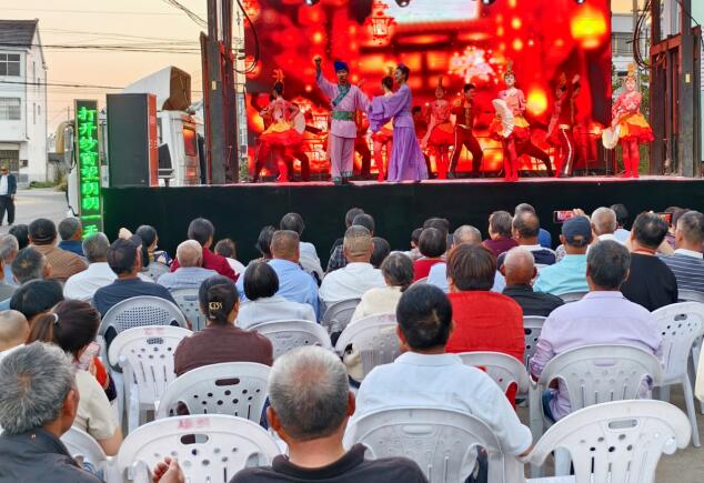 夜幕降臨,天邊被晚霞染成了淡黃色,一場(chǎng)文藝演出正在古河社區(qū)悄然上演。廣場(chǎng)上,臨時(shí)搭建的舞臺(tái)被五彩斑斕的燈光裝點(diǎn)得絢麗奪目。群眾早早地聚集在一起,他們或坐或站,臉上洋溢著期待的笑容。孩子們?cè)谌巳褐写┧螅d奮地討論著即將開(kāi)始的表演。一些老人則坐在前排,悠然自得地?fù)u著蒲扇,享受著家門(mén)口的“文化大餐”。群眾在哪里,文明實(shí)踐就要延伸到哪里。在“夜生活”最為火熱的夏季,鄉(xiāng)村紛紛開(kāi)啟文明實(shí)踐“夜模式”。