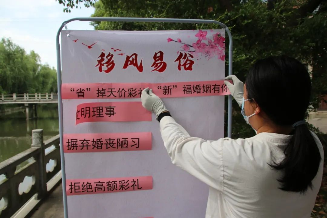 開發(fā)區(qū)韓徐村、葛家橋村、韓洋村、三豐村、洋蠻河村、農(nóng)林村、開屏村、南屏村、界墩村、泰寧村、七星湖社區(qū)等新時(shí)代文明實(shí)踐站利用微信群、電子大屏、宣傳欄等載體,入店入戶發(fā)放“抵制高額彩禮 倡導(dǎo)文明婚俗”倡議書、簽訂承諾書,舉辦專題講座,快板說唱等文藝表演形式以及線上直播的方式,向群眾宣傳新時(shí)代文明婚俗新理念,把移風(fēng)易俗新觀念傳遞到每個(gè)人心中,倡導(dǎo)適婚男女及其父母抵制高價(jià)彩禮,拒絕鋪張浪費(fèi),主張婚事新辦。