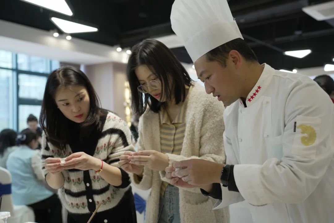 包餃子不僅僅是一種中國傳統(tǒng)美食的制作手藝,更是一種傳統(tǒng)文化、家庭情感、生活態(tài)度的體現(xiàn)。面點(diǎn)師詳細(xì)講解并示范了包餃子的步驟和技巧,青年人才們一邊看一邊動手嘗試。來自五湖四海的人才們相聚在一起,一邊包餃子,一邊嘮家常,交流著自己家鄉(xiāng)包餃子的技巧和特點(diǎn),暢談著成長、工作和生活中的趣聞趣事,實(shí)踐點(diǎn)內(nèi)充滿了歡聲笑語。