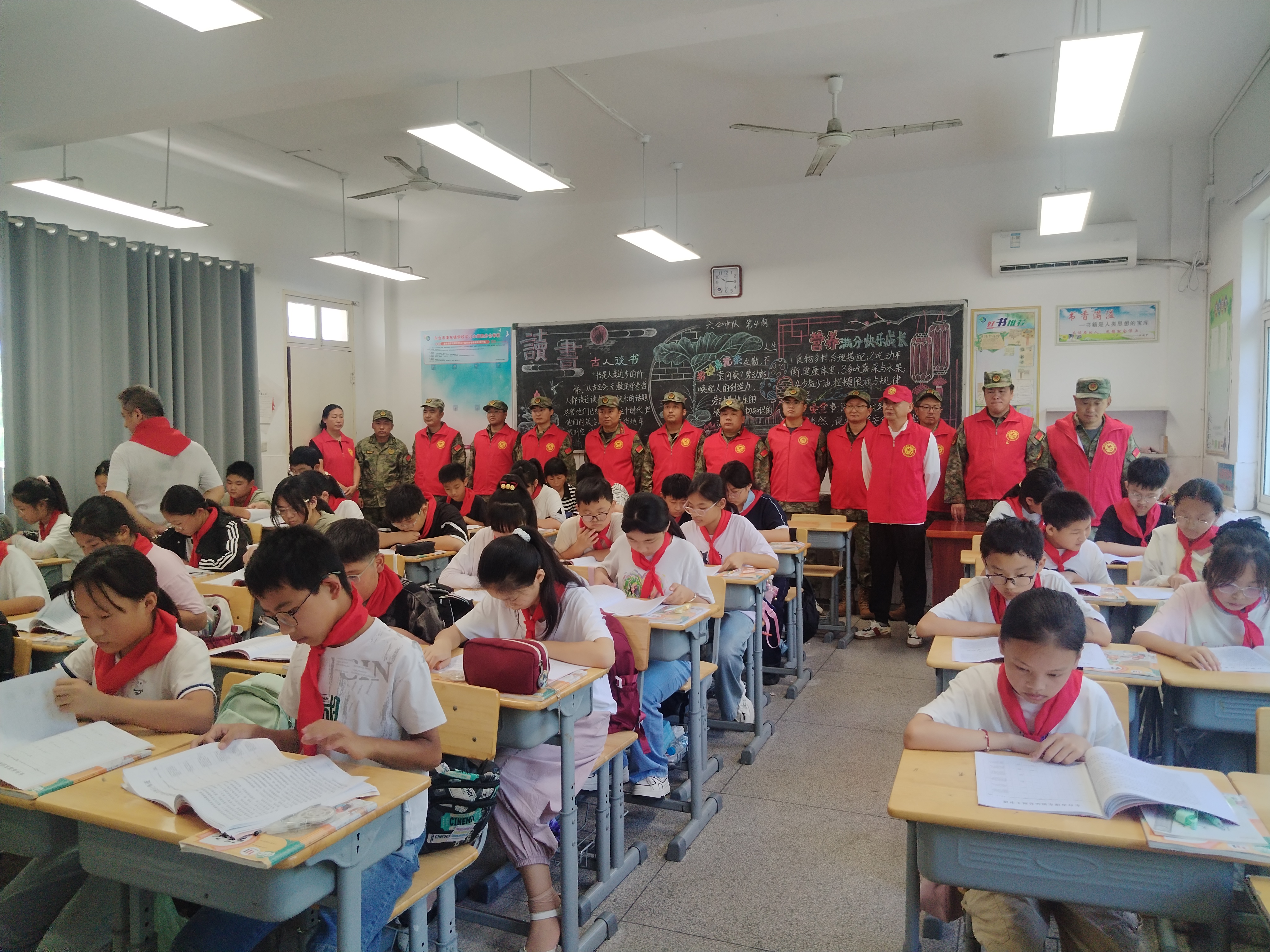 活動中,“戎耀東臺”溱東鎮退役軍人志愿服務隊還將我鎮精心編印的紅色書籍——《紅色記憶》帶入教室,分發至學生手中,鼓勵大家多讀書、讀好書,從優秀的革命文化和先進事跡中汲取成長的養分,引導青少年學生“扣好人生的第一??圩印?,在閱讀中陶冶革命情操,傳承紅色基因,逐步樹立起正確的價值觀和遠大的革命理想。