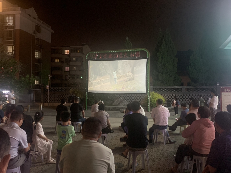 露天劇場里,播放電影的LED大銀幕剛拉開,周邊小區(qū)居民就嘩啦啦搬來小板凳,邊納涼邊觀看電影,時不時傳來陣陣歡笑聲。
