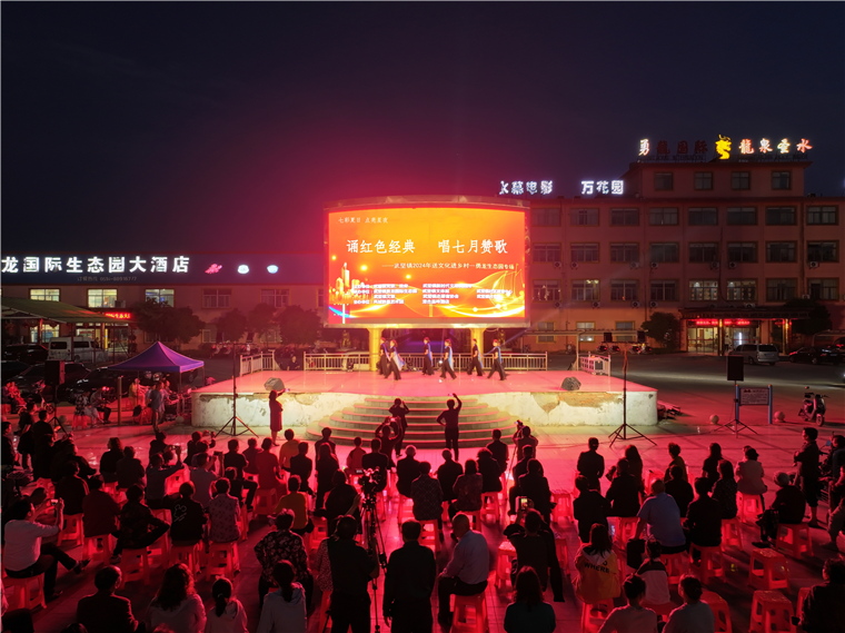 7月12日晚,揚州江都區武堅鎮新時代文明實踐所在勇龍廣場開展“誦紅色經典 唱七月贊歌”送文藝下鄉活動。活動現場,精彩紛呈,斗笠舞、大扇舞、揚劇、快板、花鼓等20個節目吸引了眾多群眾,現場熱鬧非凡,群眾掌聲不斷。