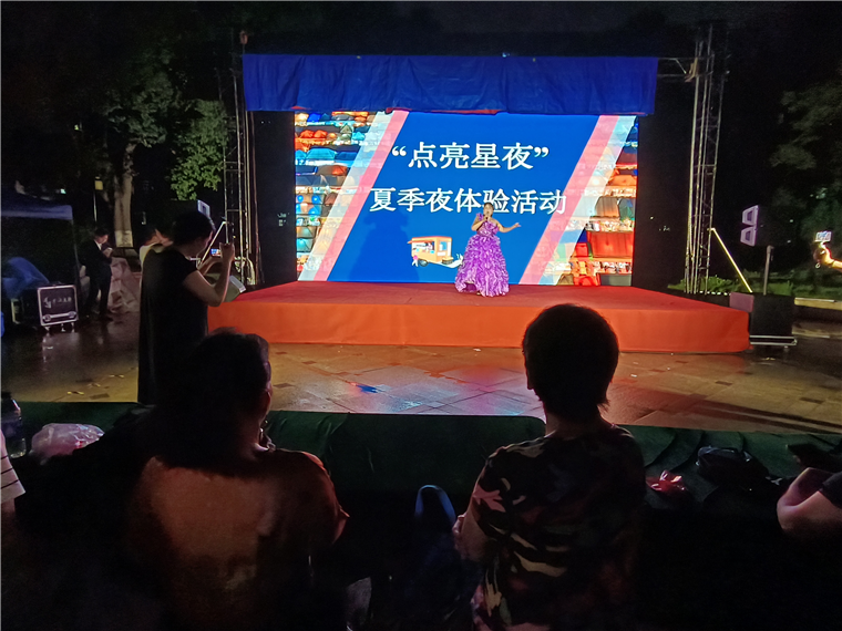 6月27日,揚州經開區新時代文明實踐中心在寶帶社區百姓大舞臺舉辦“點亮星夜”夏季納涼晚會,讓居民在納涼的同時享受健康向上的文藝節目,現場精心編排了舞蹈、大合唱、揚劇、走秀、葫蘆絲、彈詞等10多個市民喜聞樂見的文藝節目。