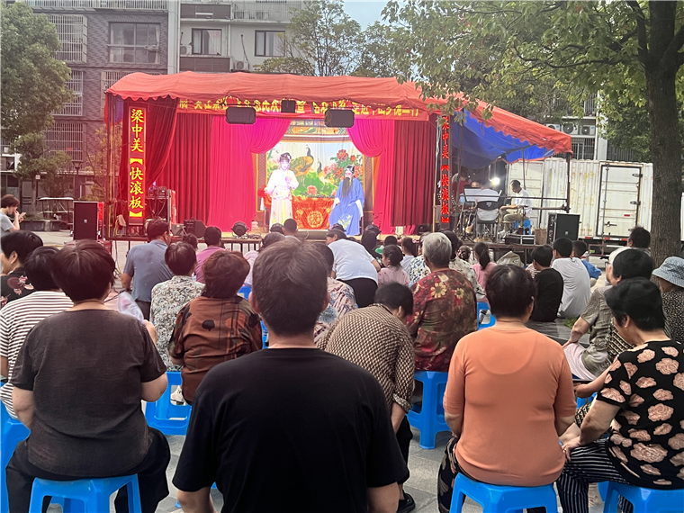 為了豐富群眾文化生活,助力鄉村文化振興,7月5日晚,在揚州江都區仙女鎮正誼村文化廣場臨時搭建的舞臺上,一場由揚劇愛好者精心策劃的揚劇惠民演出在此舉辦。隨著樂隊的節奏,演員們深厚的唱功和生動的表演引來陣陣掌聲和叫好聲,讓群眾過足了戲癮,滿足了廣大村民在家門口看大戲、看好戲的愿望。
