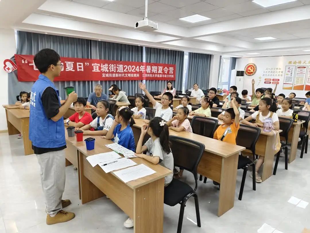 為充分發揮街道、社區在少年兒童教育中“第三課堂”的重要作用,深入推進“家校社”協同育人合力,為轄區內未成年人、外來務工人員子女、新業態就業人員子女、留守兒童提供暑期豐富多彩的校外實踐活動,7月5日,為期11天的丹徒區宜城街道“2024‘七彩的夏日’少兒夏令營”在街道新時代文明實踐所正式開營。江蘇科技大學能力與動力學院志愿者和來自轄區內的40余名8-13歲少年兒童參加開營儀式。