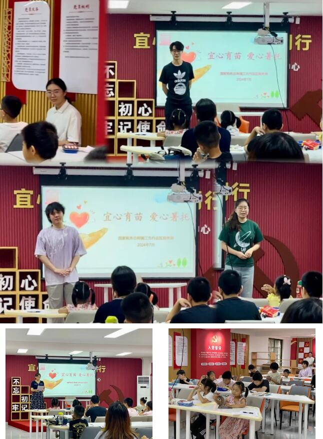 今年,開設10個“愛心暑托班”被列入2024年丹徒區政府民生實事項目,丹徒團區委、區文明辦聯合區公安局、稅務局以及各鄉鎮(街道),在全區范圍內開辦14間“愛心暑托班”。開展“七彩的夏日”“家門口的文明實踐”、未成年心理健康革命老區村村行等活動,為看護有困難的家庭以及困境青少年、留守兒童、“三新群體”子女等提供自學輔導、心理疏導、安全教育、社會實踐等豐富多彩的服務,讓學生們在夏天快樂學習、快樂生活、快樂成長!