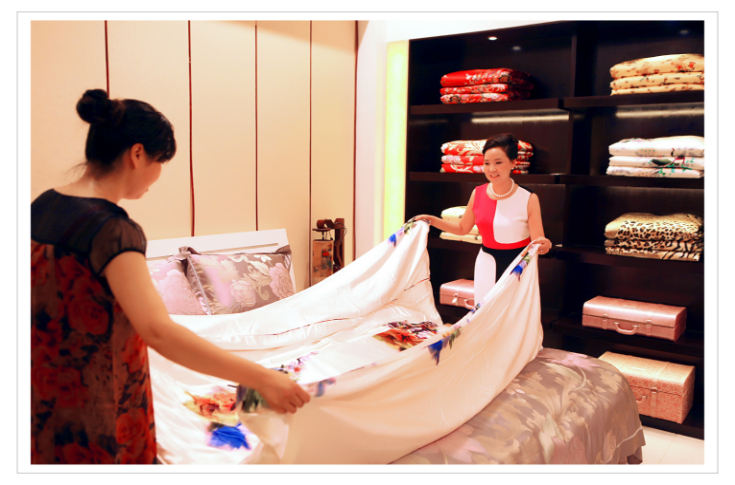 2003年,戴香蓮前往浙江考察,接觸到了蠶絲被,瞬間覺得眼前一亮。考察歸來,她當即注冊成立了大地藍絹紡有限公司,專業生產蠶絲被、蠶絲毯等高中低檔絲綢產品。她帶領團隊改進生產工藝流程,使桑綿球的原材料利用率提高15%,達到國內領先水平;對鍋爐進行改造,節約能源30%以上。大地藍牌蠶絲被先后被授予“中國名牌產品”和“國家免檢產品”,大地藍商標被評為“中國馳名商標”等。2013年,公司又獲得國家科技進步二等獎。如今,大地藍下轄7家子公司和分公司,在全國有180多家直營店和專賣店,形成了以蠶絲被、真絲睡衣、真絲絲巾等十大類300多個品種的蠶絲產品產業鏈,年銷售額超過7億元。從做產品、做品牌轉向做思維、做文化,大地藍還在探索。