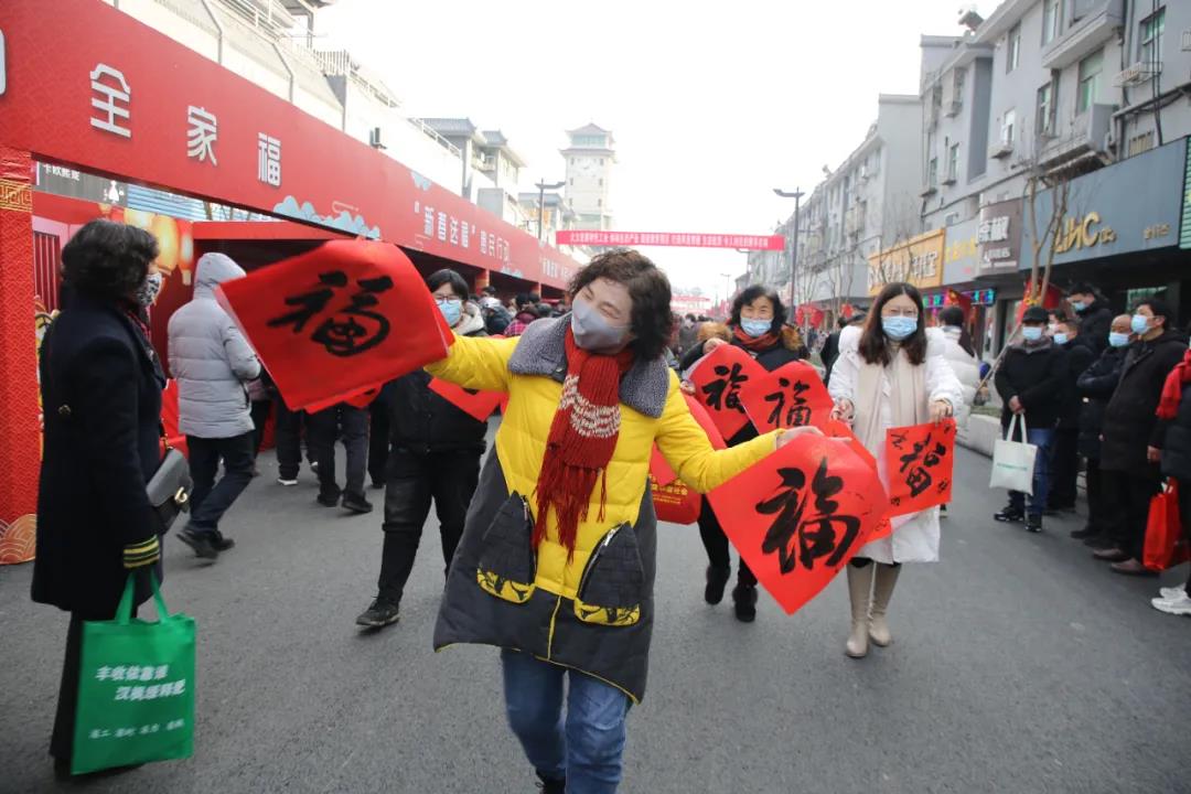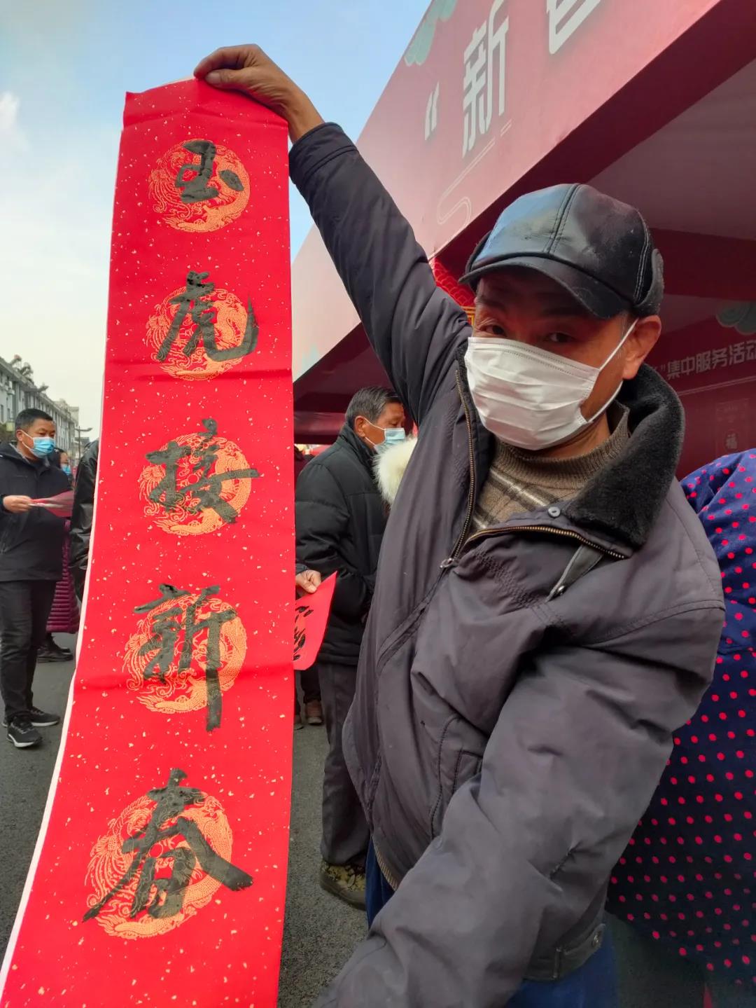 火紅的春聯、喜氣的福字,洋溢著新年的喜慶。紅色郵票、紅色文創作品,揭示了幸福來之不易。現場的農民群眾感受著黨和政府的關心,開開心心地將美好祝福帶回家。
