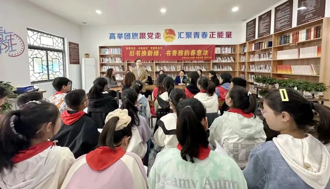 近日,靖江靖城街道江華社區聯合常州大學懷德學院、城中小學,在悅讀文明里弄開展“溫馨悅讀 書香靖鄰”讀書節活動,倡導綠色、書香生活。活動中,懷德學院的5名大學生分享了自己的閱讀故事,倡導“讀書好、讀好書、好讀書”;飛花令環節以“綠”為題,掀起搶答熱潮;“舊書換新綠”環節,孩子們用書籍換取綠植,收獲來自春天的喜悅和祝福。