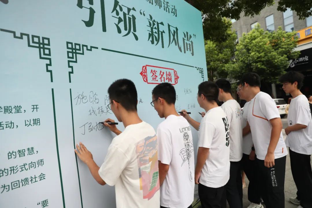 活動伊始,初、高中優(yōu)秀畢業(yè)生代表在“文明謝師倡議書”上鄭重簽名,一句承諾,勝過千宴,一份簽名,向攀比浪費說“不”,讓感恩回歸本真。