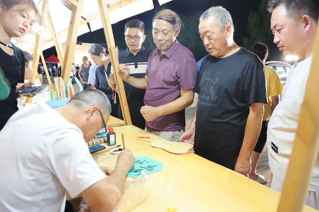 非遺體驗區無疑是當晚最熱門的活動區域,非遺漆扇題字、養生錘制作、扭扭棒 DIY、泥狗子制作、靖江竹編等互動項目,讓市民在親手制作的過程中,近距離感受傳統文化的獨特魅力。