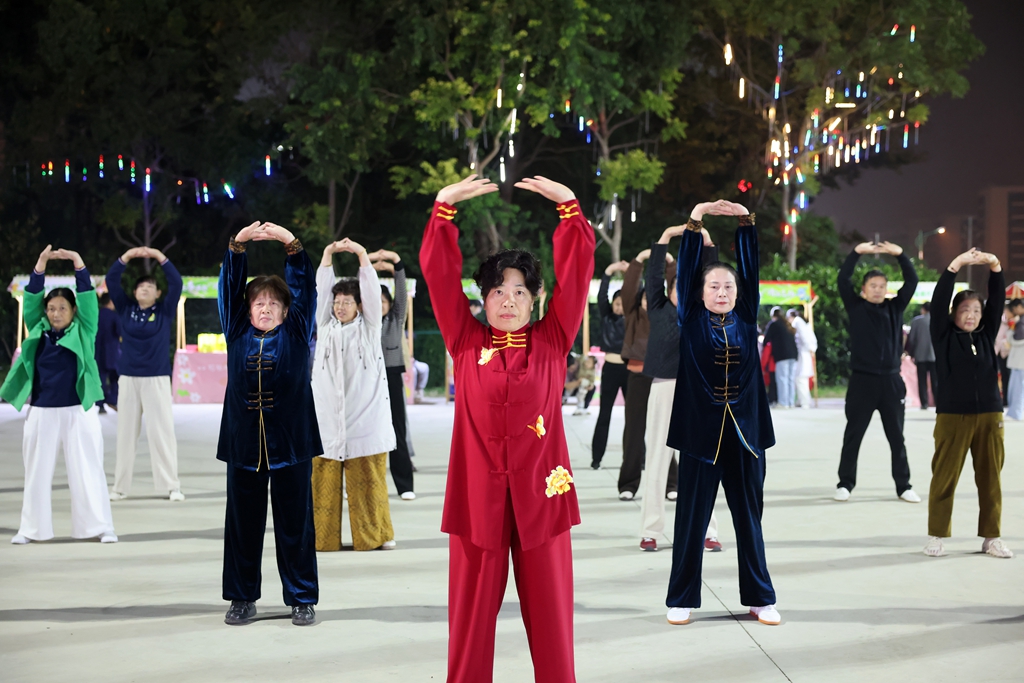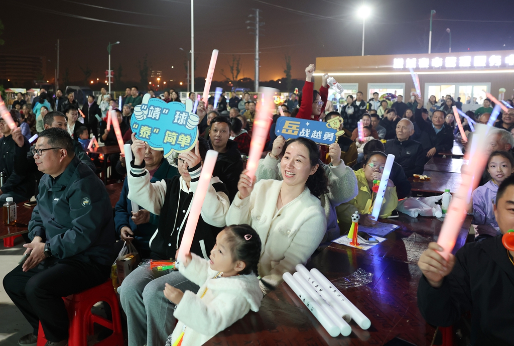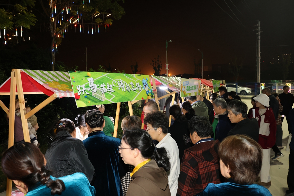 活動還設置了眾多互動性、趣味性強的攤位。非遺體驗區文化氣息濃厚,竹編藝人現場編織精巧竹器、書法愛好者揮毫潑墨、桿秤制作藝人則耐心講解桿秤的歷史淵源、使用技巧及保養方法,讓市民在互動中感受傳統文化的深厚底蘊。科普互動區通過“場景化體驗+互動式教學”,將急救、消防知識轉化為可觸可感的“安全干貨”。“足球之夜”應援區也是熱鬧非凡,“蘇超”打卡墻合影攤位前,市民們紛紛合影留念,記錄下這美好的時刻。現場特別設置了蘇超有獎競猜環節,大家紛紛踴躍答題,爭相贏取精美禮品,現場氣氛瞬間被推向高潮。
