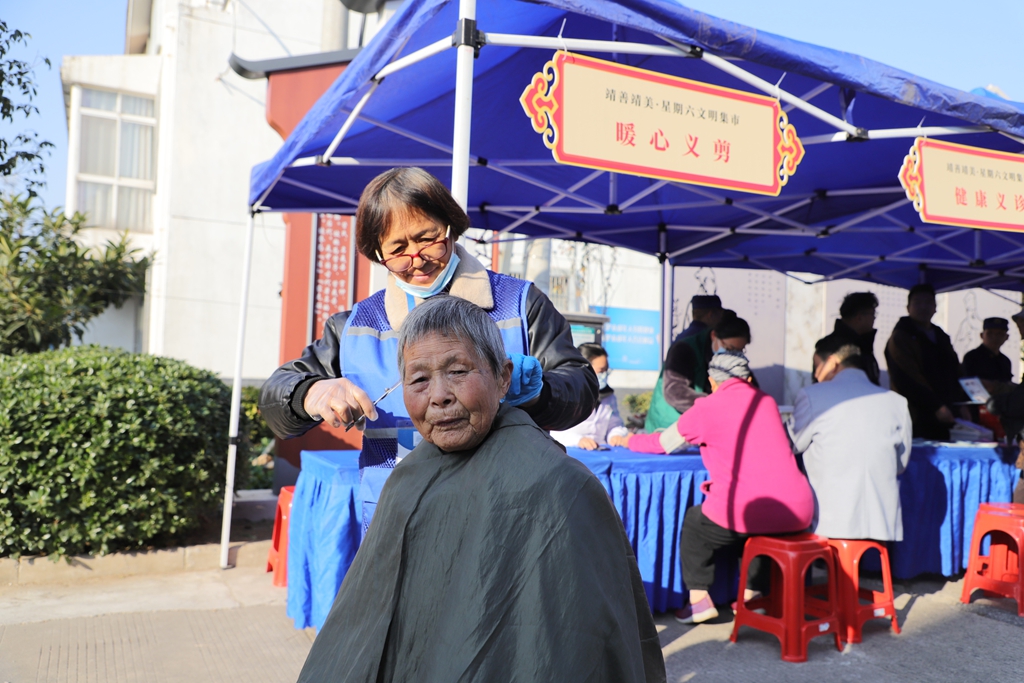 12月6日,“古鎮煙火氣 志愿文明風”——“靖善靖美·星期六文明集市”暨“三下鄉·三進城”文明實踐季市鎮專場活動舉行。活動融合文化展演、非遺體驗、健康守護、便民服務及政策宣傳于一體,設置八大主題活動區,將優質文明實踐服務送到群眾“家門口”。