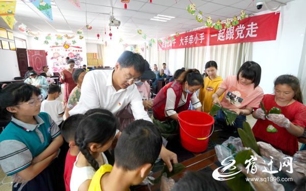 6月6日,在宿城區蔡集鎮牛角社區,志愿者們與留守兒童一起包粽子、憶黨史,感受端午文化。在田洼村,20名留守兒童和15名留守老人與志愿者們一起學黨史、做香囊、包粽子,開展“濃情憶端午、大手牽小手、一起跟黨走“活動。