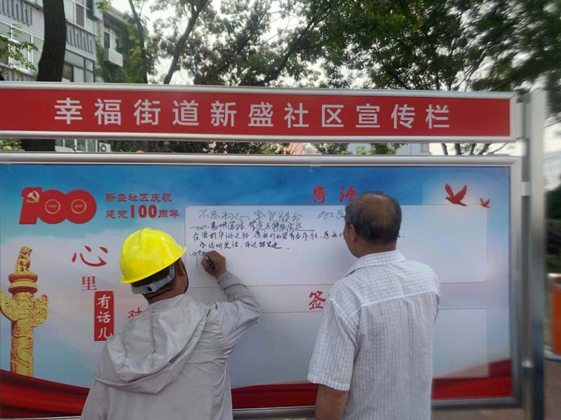 “在中國共產黨成立100周年之際,愿我們的黨青春永駐,愿我們的祖國繁榮昌盛”“永遠聽黨話 永遠跟黨走”……在“心里有話兒對黨說”寄語簽名環節,居民們在簽名墻上寫下了自己的深情寄語,表達了自己對黨、對祖國的深深祝福。