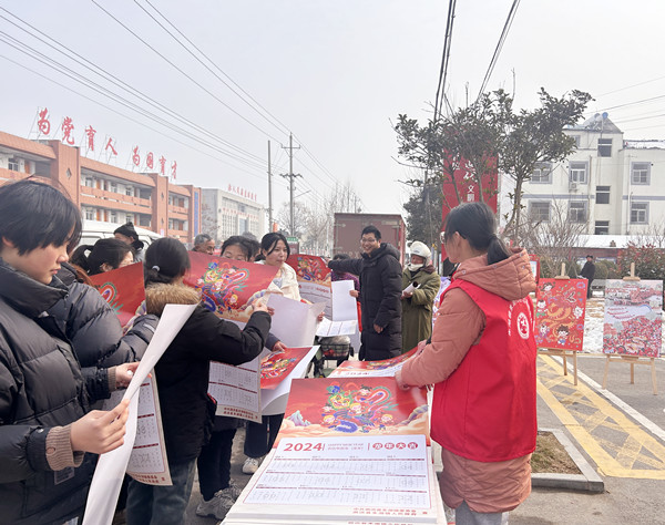 活動現場,一張張吉祥喜慶、色彩鮮明的年畫寄托著人們對美好生活的向往,志愿者們用通俗易懂的語言向大家介紹年畫的起源以及寓意,引導群眾感悟中華優秀傳統文化的魅力。大家你一言我一語,相互討論著過年的儀式感,推薦自己最喜歡的年畫作品。此外,打卡拍照也是本次活動最具特色的環節。本次活動設置多個打卡墻,融入了龍年的元素,擺放了萌趣十足的“金龍送福”拍照框,群眾紛紛合影留念,共迎新春,成為了一道年味十足的靚麗風景線。