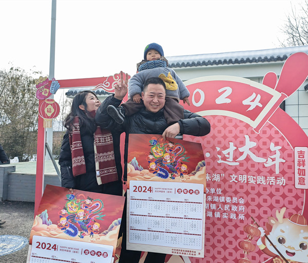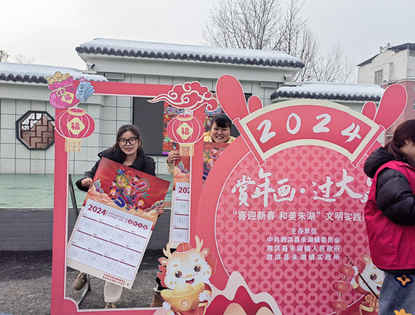 “今年的年味特別濃,年畫和打卡墻都很漂亮,借此機會,我們全家在打卡墻拍了一張特別有意義的全家福。”家住泗洪縣朱湖鎮朱湖社區的王阿姨滿臉笑容地說。為營造文明祥和的節慶氛圍,2月8日,朱湖鎮開展“賞年畫 過大年——喜迎新春 和美朱湖”文明實踐活動,在朱湖鎮新時代文明實踐廣場上展陳優秀年畫作品,讓群眾感受傳統民間藝術的魅力,用滿滿的煙火氣迎接新年的到來。