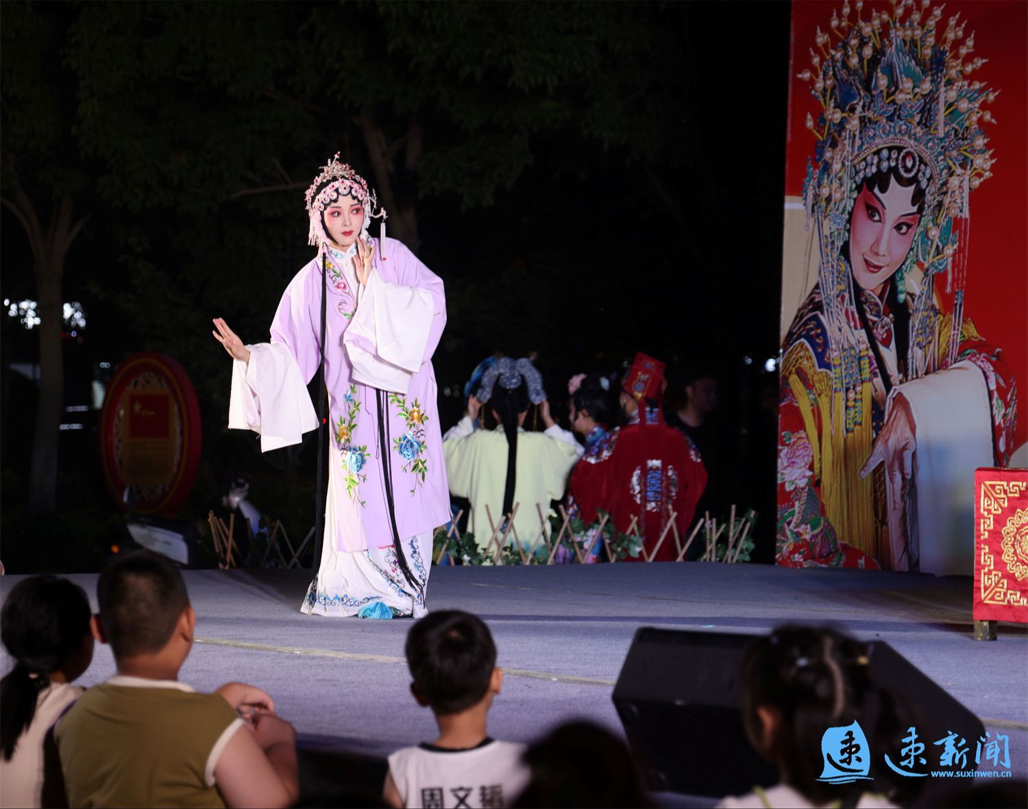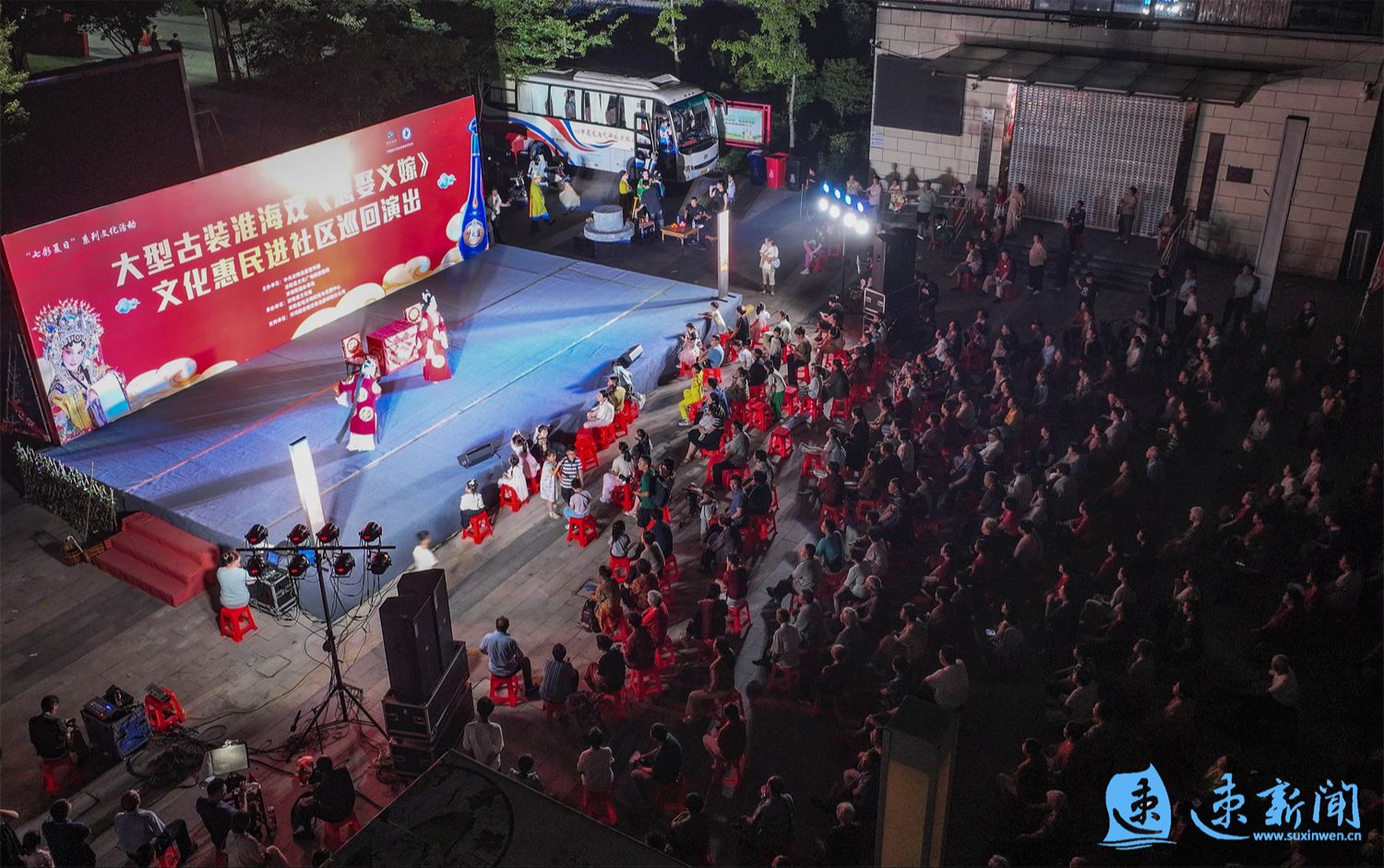 一塊演出板,一方小舞臺,一群專業的戲曲演員……8月29日晚,在沭陽縣文化館門前廣場上,大型古裝淮海戲《恩娶義嫁》正精彩上演。