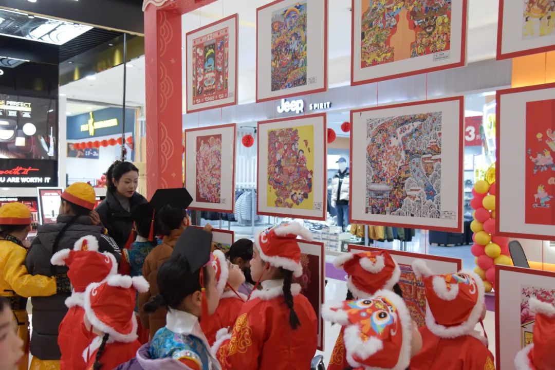 活動現(xiàn)場特別設(shè)置“賞年畫 過大年”年畫展,一幅幅色彩斑斕、寓意吉祥的年畫整齊排列,熱情的大學(xué)生志愿者為現(xiàn)場的小朋友們,耐心講解年畫中傳統(tǒng)圖案的寓意和背后蘊含的民俗文化。