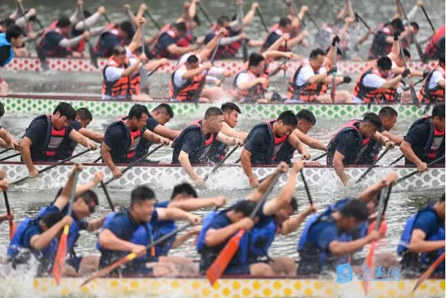 5月31日上午,2025“洋河?夢之藍”杯宿遷端午龍舟賽在市區古黃河西湖路至洪澤湖路段激情開槳。作為連續舉辦三屆的城市品牌賽事,這場集體育競技、文化傳承與商貿活力于一體的端午盛宴吸引了全市33支龍舟隊、超800名選手在此劈波斬浪,更以“體育+文化+生態”的多元矩陣,向全國展示著宿遷“水潤之城”的獨特魅力。