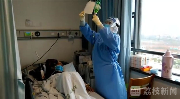 華中科技大學同濟醫院中法新城院區重癥科E組,病人們充滿希望的一天在這樣一聲聲甜美的問候中開啟。雖然穿著厚厚的防護服,大家還是會從聲音中認出,“小可愛”來了!