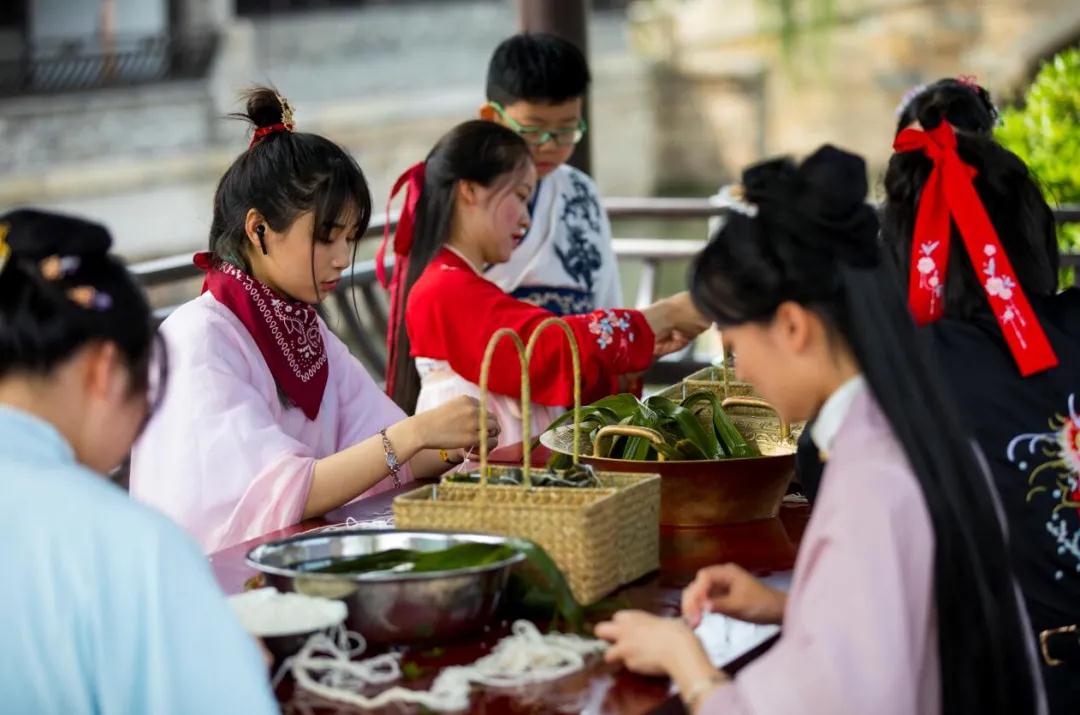 在穿越中傳承,在傳承中弘揚。在西溪景區犁木街上,古街小橋流水間,一襲襲漢服恍若穿越。亭臺之上,一場精心策劃的包粽子比賽引得游客紛紛駐足參與,捋粽葉、填糯米、纏繩子,大家紛紛展露各自的“看家本領”,不一會兒粽葉和糯米就變成了誘人的粽子。現場更有不少攝影愛好者,他們手持“長槍短炮”,盡力捕捉最美的風景。