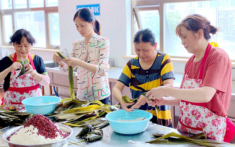 熱火朝天包粽子。