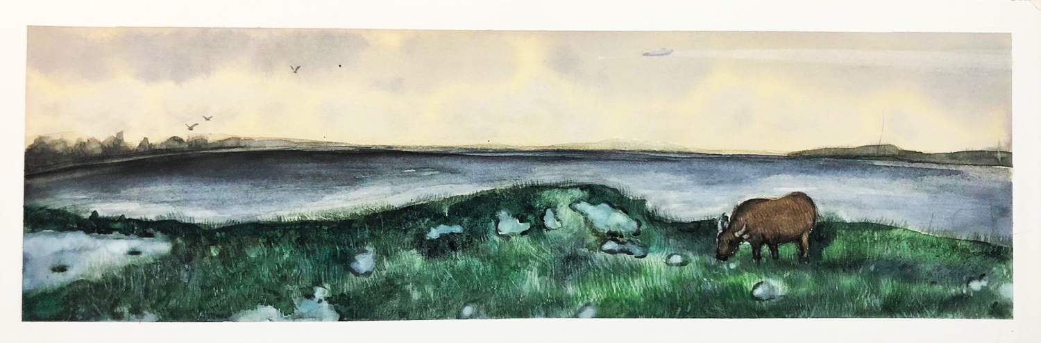 作品介紹:作品描繪了美麗的家鄉(xiāng)如東運河邊,水草豐盛,牛兒吃草,悠然自得的場景。遠處天空的水鳥飛翔,右上角的飛機劃過天際。表達了作者熱愛家鄉(xiāng),熱愛生活之情!