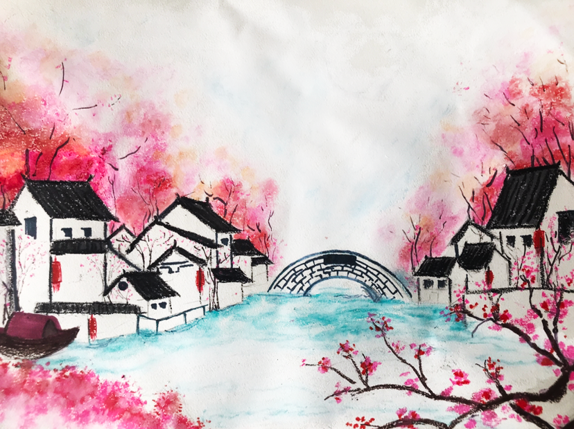 作品介紹:我的家鄉(xiāng)在蘇北水鄉(xiāng)鹽城中興,是著名作家曹文軒先生的出生地。每到桃花盛開的季節(jié),一朵朵桃花在岸邊盛開,空氣中彌漫著濃郁香味。清晨的太陽從地平線上升起,照耀著這美麗而動人的水鄉(xiāng)。