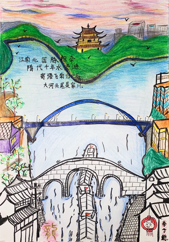 作品介紹:南京既是大運河的催生地,又是大運河的參與地;既是大運河的復興地,又是大運河的共榮地。南京與大運河既共生共榮,又休戚與共;既若即若離,又水乳交融。南京的繁榮興盛離不開大運河的長年滋養(yǎng),大運河的輝煌榮光更有南京的無私奉獻。作為一名南京小朋友,我希望我們的家鄉(xiāng)南京和大運河的明天會更好。