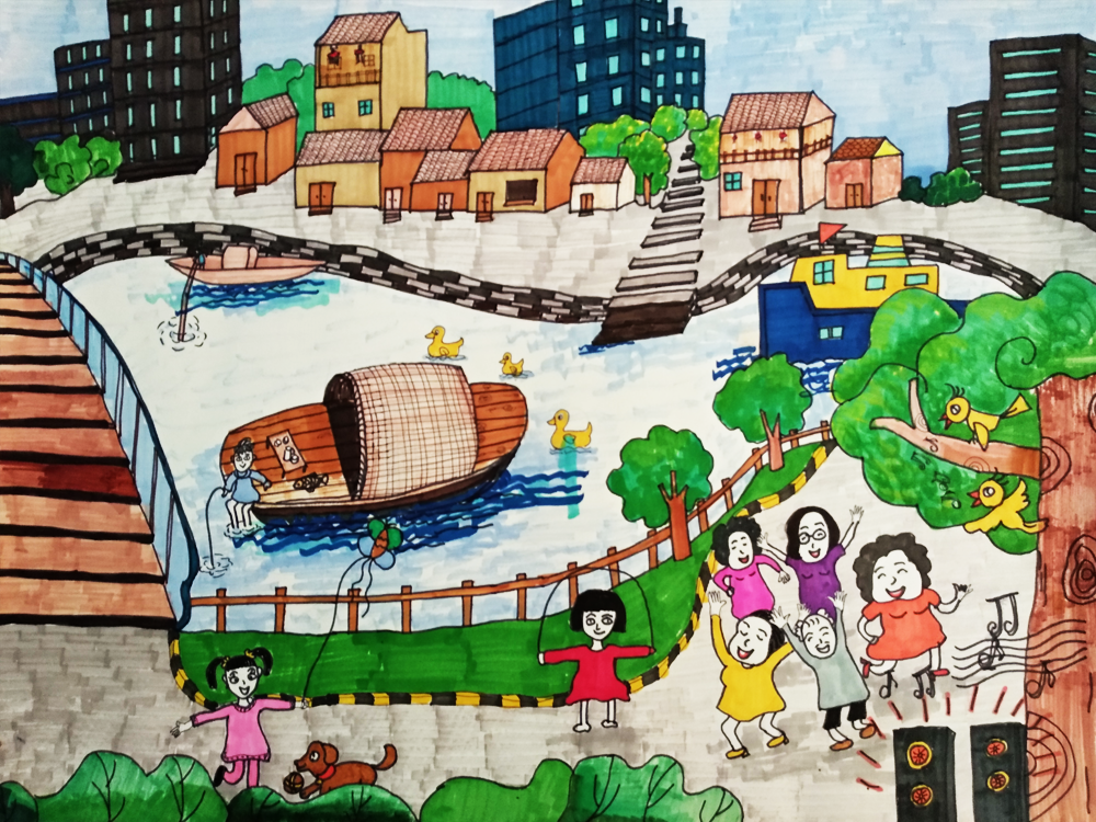 小手畫童心,請你通過手中的畫筆畫出運河邊的幸福生活,對家鄉(xiāng)發(fā)展的美好祝愿。