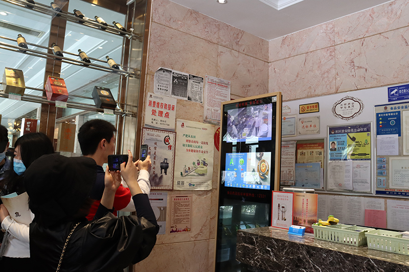 選料、加工、流轉都能看得見,在南通市崇川區江海美食文化街,這里的“明廚亮灶”監控系統吸引了采訪團的關注。以打造“百姓廚房,美食天地”為目標,以建設“誠信標桿,文化街區”為追求,江海美食文化街區在誠信街區的創建上,除了進行強力監管,還制定了誠信經營戶考評標準,有效帶動商戶競爭評優、自覺誠信經營,取得了顯著成效。