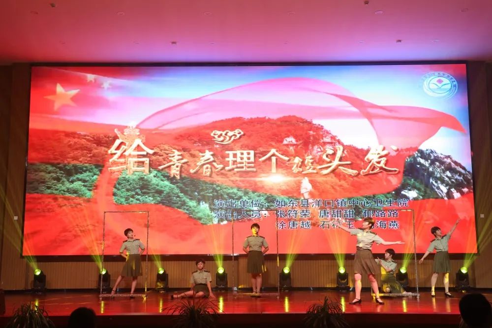 洋口鎮中心衛生院黨支部唐甜甜、李璐茜,姚佳欣等人帶來舞蹈:《給青春理個短頭發》。