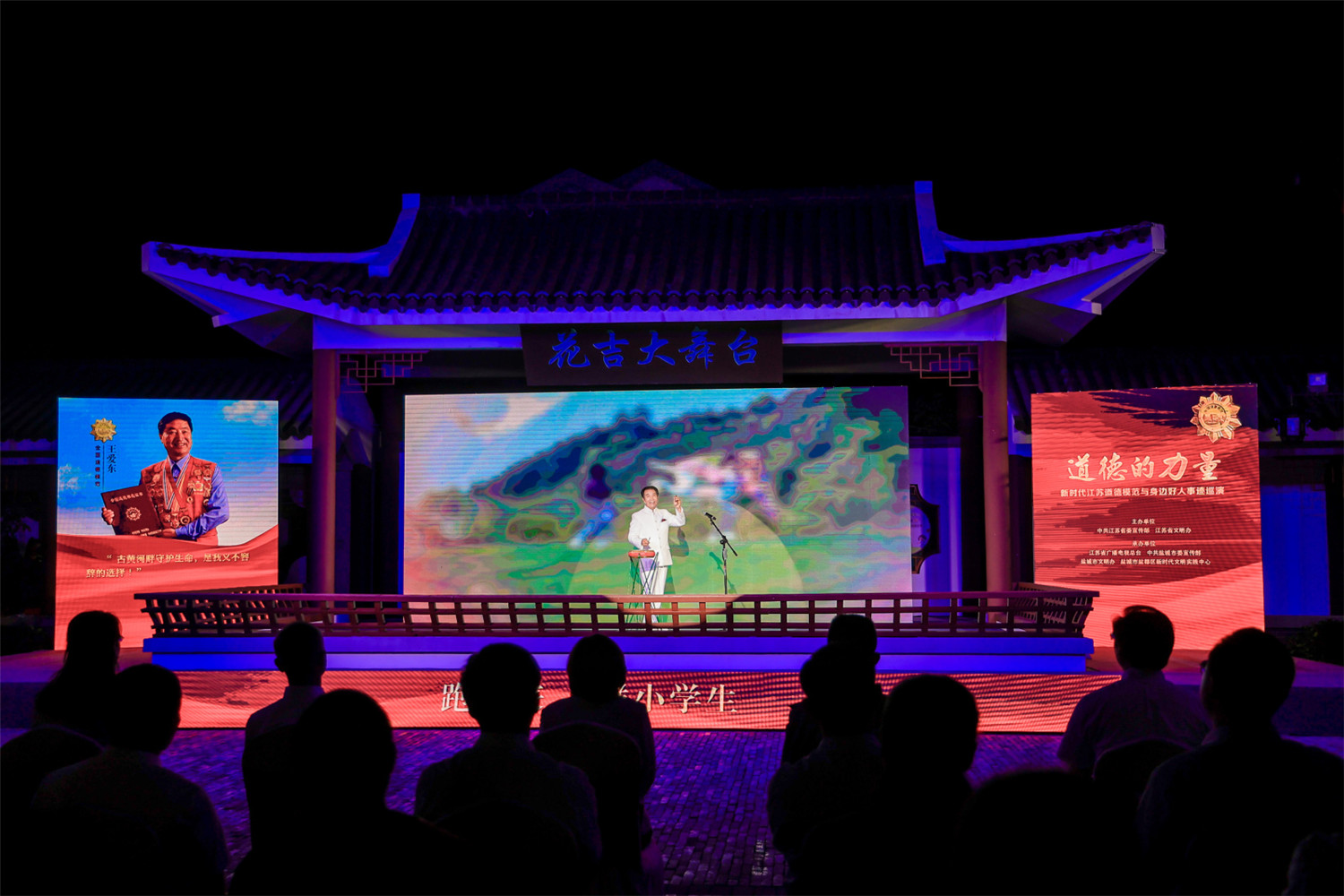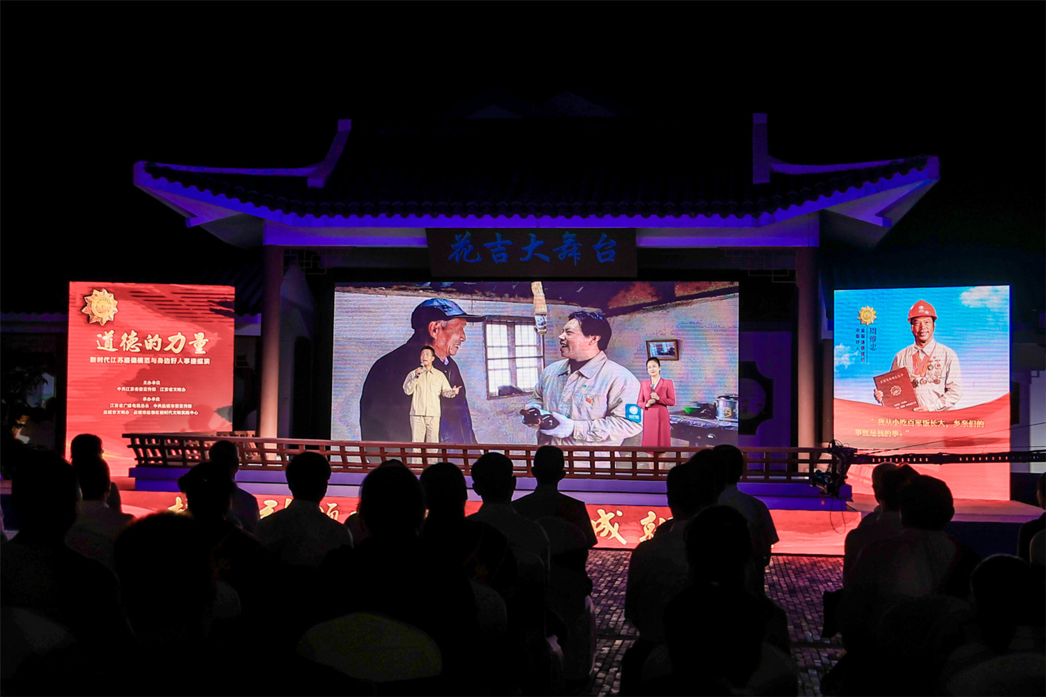 交匯點訊 8月24日晚,鹽城市鹽都區鹽瀆街道花吉村新時代文明實踐站前的露天廣場上,“花吉大舞臺”熱鬧非凡。趙亞夫、錢七虎、王愛東、周維忠……圍繞一串串閃亮的名字,舞臺上呈現一個個生動故事,激蕩著人心?!暗赖碌牧α俊薄聲r代江蘇道德模范與身邊好人事跡巡演,由此拉開帷幕。
