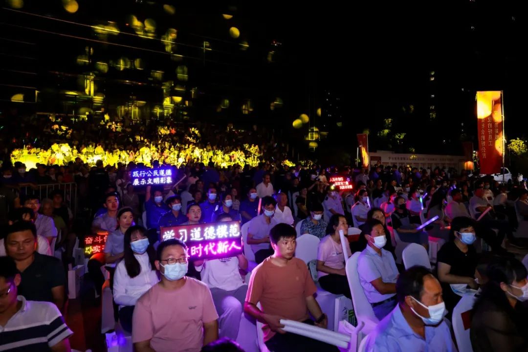 晚上7點半,演出正式開始。聞訊趕來的群眾把句容文化藝術中心南廣場的臺階坐了個滿滿當當。不少市民還打起了“喜迎二十大 筑夢向未來”“踐行公民道德 展示文明形象”的燈牌,擔當起現場的“最強氣氛組”,用實際行動體現了“追星當追這樣的星”。
