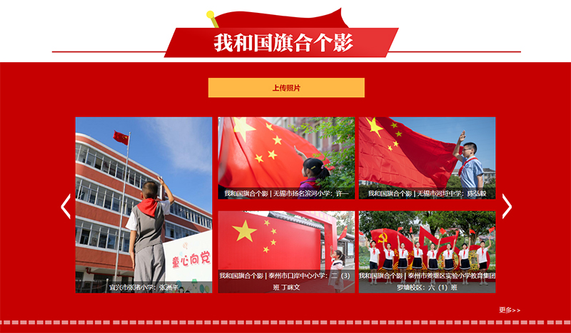 五星紅旗是革命先烈用鮮血染紅的,沒有他們就沒有新中國的成立。五星紅旗象征共產黨領導下的革命人民大團結。在“我和國旗合個影”版塊,創意設置多個極具儀式感的場景,通過融媒“技術+”手段實現現實場景的定格在線上展示,推動活動更具交互性、參與感。全省各地青少年朋友可以云端共享和國旗合影的美好時刻,感恩來之不易的幸福生活,表達對祖國的熱愛。